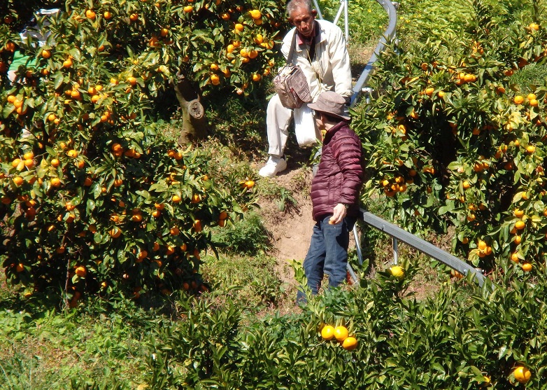 | 急な坂道を何とか登る | ミカン狩りも楽じゃないよ |