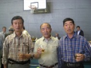 歩き方の講習で、少し汗ばんだところで、懇親会。三島事業所の伊豆体育館で。