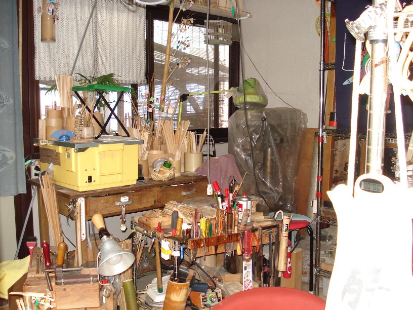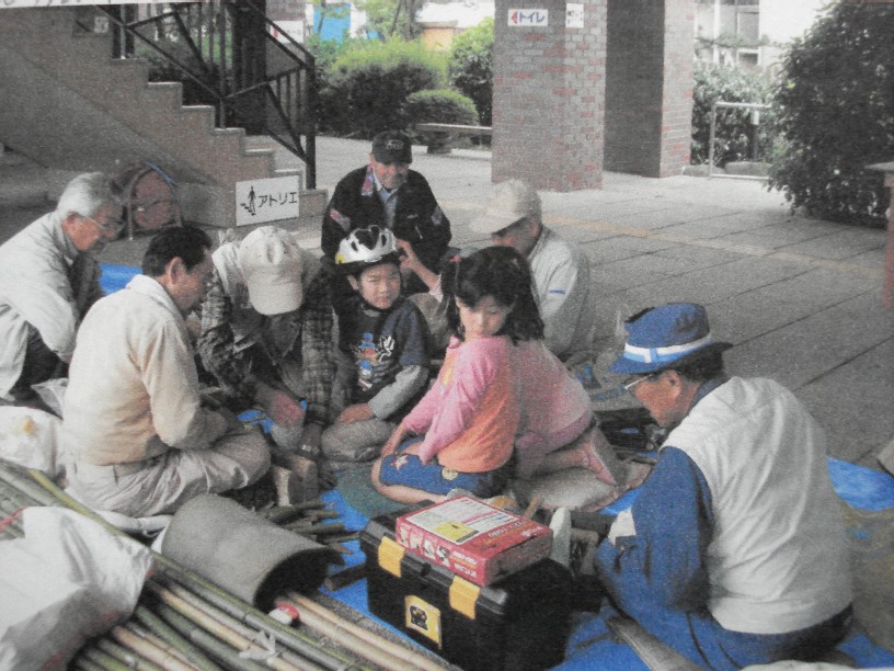 竹細工はしゃもじ類や昆虫、鶴、風車などを製作