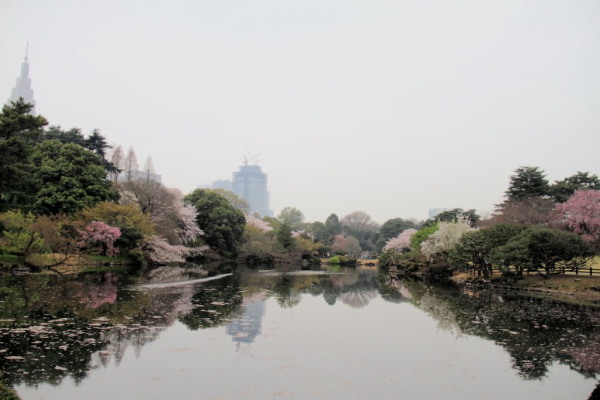 午前中の新宿御苑は曇り空 たくさんの人達がお花見に訪れ、大変賑わっていました。