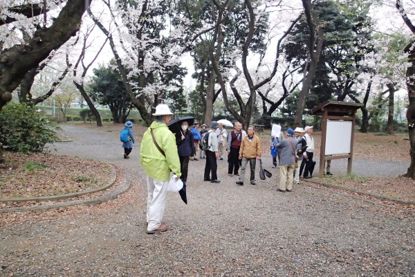 | 桜園地を歩く参加者達 | フランス式整形庭園のプラタナス並木 |